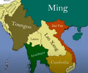 King Khagemba (Conqueror of the Chinese; 1597–1654), was a monarch from the Kingdom of Kangleipak.[1][2] He also introduced a new form of polo and new apparel styles. Under his regime he focused on a new form of Manipur and built many markets in different places like the Ema market. During his regime many Chinese workers built bridges and walls.The present-day Kangla gate was also built by captured Chinese workers who taught the Manipuris how to make bricks. He was called "The conqueror of the Chinese" or "Khagemba"(khage-Chinese and ngamba-win over) after defeating the Chinese at the northern border of the kingdom. Also during his time Manipur introduced coins widely in the kingdom. Under his regime there was a migration of muslims into the kingdom and Manipur established good relationships with the Mughal Empire.[3]