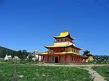 A khurul (Kalmyk: хурул, romanized: khurul; Mongolian: хурэ / хүрээ, romanized: khure / khüree or hure or küriye) is a Buddhist monastery (temple, abode) in Kalmyk (Mongol-Oirat) Lamaism.[1] Some of the most famous Kalmyk khuruls are the Burkhan Bakshin Altan Sume (contemporary) in Elista, Republic of Kalmykia, Russia, and the Khosheutovsky khurul (which was originally in the Kalmyk AO / Kalmyk ASSR, but is now located in Astrakhan Oblast, Russia).[2]