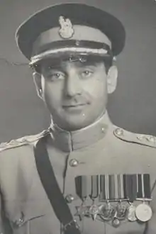 After graduation, he joined the Indian Military Academy and was commissioned as a Second Lieutenant in April 1940 in the 8th Punjab Regiment of the British Indian Army. He served in the Burma Campaign of World War II.[1] He reached the rank of major by 1943. In 1945 he was promoted to rank of lieutenant colonel and appointed as the additional deputy president of Inter Services Selection Board of British Indian Armed Forces.[1]
