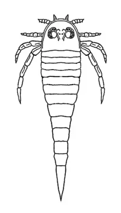 Reconstruction of K. cyclophthalmus with prosomal appendages and telson based on close relative Brachyopterus.