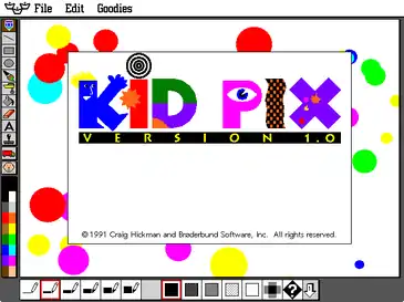 Kid Pix is a bitmap drawing program designed for children. Originally created by Craig Hickman, it was first released for the Macintosh in 1989 and subsequently published in 1991 by Broderbund. Hickman was inspired to create Kid Pix after watching his son Ben struggle with MacPaint, and thus the main idea behind its development was to create a drawing program that would be very simple to use.[2]