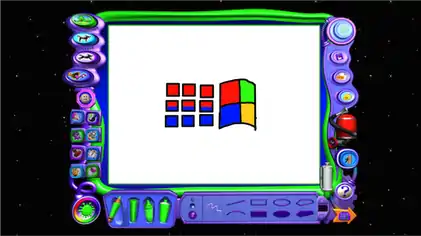 "Moopies" is very similar to the standard Kid Pix program except with a reduced canvas size and the ability to add several animated rubber stamps and wacky brush items. Music and sounds can also be chosen to play in the background of the "moopie".