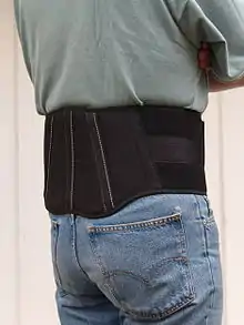 Kidney belts are often worn by weightlifters, and, sometimes, by manual laborers and medical patients. They are also used by motorcyclists, especially offroad riders and those engaged in long-distance motorcycle riding, to support the lower back,[1][2][3] and to guard against wind chill. Stuttgart physician Peter Falb has stated that the support provided for motorcyclists is purely psychological; kidneys are naturally strongly supported to the rest of the body.[4]