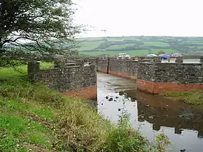 The wooden Pontnewydd aqueduct, which was prone to the river flowing over its top, was replaced by an iron one built on a slightly higher level to provide more room for the river to flow under it.[10] Pinkerton's two locks were rebuilt, and the banks of the Kymer canal were raised by 2 feet (0.6 m), to allow the water level to be raised. This had also required the Kidwelly basin walls to be raised.[11] At the southern end, access to Burry Port harbour required a deep cutting to be constructed, and this was completed by March 1835.