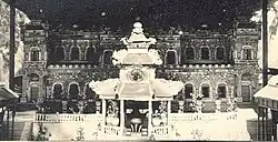 In 1921, Emperor Khải Định (1885-1925) started to build a new palace in European style within the Forbidden Purple City of Huế.[1] When completed in 1923, the Kien Trung palace became his own residence with the Imperial City.[1][2] Khải Định passed away at the palace in 1925. A model of palace in papier-mache was burned during the funeral ceremony, in the hope that his afterlife residence would be similar to the Kien Trung palace.[3]