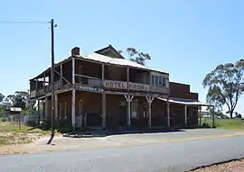 By around 1933, the first houses were established in the township and a public telephone was installed.[7][8] The Bank of New South Wales established a branch in the town in 1935 and a bush nursing hospital was built the following year.[7][9] The Sydney Morning Herald reported in 1937 that Kikoira–with neighbouring Ungarie, Tullibigeal and Weethalle–was experiencing a "building boom".[10] An Australian rules football team was formed in 1938.[11] The New South Wales Department of Education established a public school in the town in 1939.[12]