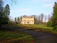 Lying two miles (three kilometres) north of Kilbirnie on a promontory overlooking the wooded ravine of the River Garnock is Glengarnock Castle, a ruined 15th century keep. Ladyland Castle, mostly demolished, lay nearby and Ladyland House still survives as designed by David Hamilton.[33]