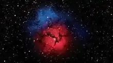 ![]() M20, the Trifid Nebula as taken by the 10" (0.25 Metre) telescope in the Waasa Debaabing Dome at the Killarney Provincial Park Observatory Complex