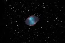 ![]() A single 10 second image of M27, the Dumbell Nebula, imaged through the 0.4 Metre telescope in the Kchi Waasa Debaabing Dome at the Killarney Provincial Park Observatory Complex |