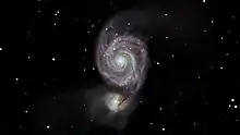 ![]() M51, the Whirlpool Galaxy as imaged in HaOiiiRGB from the 0.4 Metre telescope within the K'chi Waasa Debaabing Dome at the Killarney Provincial Park Observatory complex |