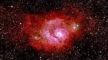 ![]() M8, the Lagoon Nebula and open cluster NGC 6530, imaged with the 130mm telescope in the Kchi Waasa Debaabing Dome at the Killarney Provincial Park Observatory Complex |
