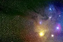 ![]() The Rho Ophiuchi Nebula Complex taken from a 61mm refractor from the Killarney Provincial Park Observatory. Total integration time is 21 minutes |