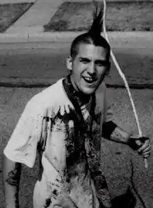 Dustin Camp was charged with murder. While out on $100,000 bail, he was allowed to attend his graduation ceremony at his original high school.[9] During his trial his defense claimed that he had acted in defense of a friend whom Deneke was attacking. Camp's defense attorney, Warren L. Clark, defended by trying to shift the blame on Deneke and the punk community. Clark portrayed the punks as violent thugs and went as far as calling them "armed goons".[5] Defense attorney Clark used incidents from Deneke's past that made him look violent, and claimed that he was the aggressor on the night of his death.[2] The defense also claimed that witnesses for the prosecution were punks who lied under oath. In contrast to the punks, the defense characterized the alleged murderer as a wholesome and clean-cut youth. The defense emphasized Camp's normalcy, claiming Camp was a good Christian, a good Texan, and a football player.