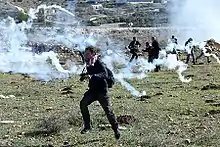 Mustafa Tamimi, a 28-year-old Palestinian taxi driver,[3] was killed when he was hit by a tear gas canister by Israeli forces fired from close range and striking him directly in the face on 9 December 2011 during a weekly protest[4] in Nabi Salih, West Bank.[1][5][6] The tear gas canister that struck him was fired from the rear door of a military vehicle at which he was throwing stones while running after it.[7] The incident raised questions about Israeli military behavior when engaging with the demonstrators.[8]