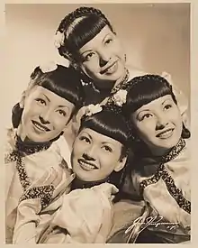 With the outbreak of the Second World War, the sisters entertained American servicemen in United Service Organization (USO) camp shows across the country. They also joined Ina Ray Hutton and her Orchestra, a female-led all-male big band.[12]