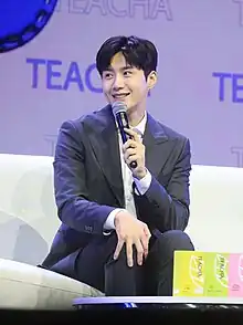 Kim returned to the small screen in October 2020 through the tvN drama Start-Up.[49] His portrayal of a start-up investor with a tragic past was well-received by viewers and garnered him a nomination for the Baeksang Arts Award for Best Supporting Actor – Television.[50][51] During the airing of Start-Up, Kim topped the monthly brand reputation ranking index by the Korean Business Research Institute and experienced a surge in popularity domestically and internationally.[50][52][53]