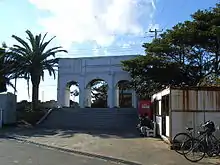 Kimigahama Station opened on 21 June 1931.[1] The original western-style station building fell into disrepair in the post-war years, and was eventually demolished, leaving just the platform.[2] In December 1990, a white Italian-style archway was added, but this was partially demolished in February 2007, leaving just the bare pillars.[3]