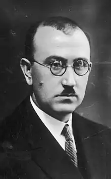 Kimon Georgiev established the political circle "Zveno" with Damyan Velchev in 1927, firstly as a non-partisan organization that aims to improve the socio-political climate in the country.[25] It proclaimed its support for authoritarian power, raised above the strictly party interests, with national purpose. The fascists influence on the Zveno is undisputed, but its not characterized as fascist, but a corporate statism in which it mainly drew inspiration from Italian fascism.[26] Georgiev ceased ties with the Democratic Alliance in 1930 and after the 1931 Bulgarian parliamentary election, he was no longer a deputy of his group. He became a leader of the Zveno and in the beginning of 1932, a newspaper Izgrev was published with one of the editors being Georgiev himself. He published articles in which he criticized communism and the Soviet Union, as well as declaring for a strong government "in the name of order and state intervention in economic life".[27]