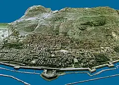 Centre portion of the scale model of Gibraltar, completed in 1865, with King's Bastion depicted in bottom centre.