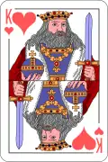 King is a Russian compendium card game of the Hearts family for 3 or 4 players that goes back to the 1920s.[1] It may be related to Barbu, but its country of origin is unknown.[2]