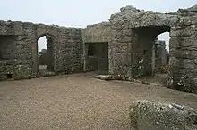 - ↑ English Heritage argues that the whole site was two storeys tall; the Cornwall and Scilly Historical Environmental Record favours a mixture of two and single storey construction; the historians Mark Bowden and Allan Marshall Brodie suggest that it is impossible to tell.[42]