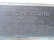 King Neptune (May 16, 1942 – May 14, 1950) was a pig used by a United States Navy recruiter to raise $19 million in war bonds (over $308 million in 2019 adjusted for inflation[1]) for the construction of the Iowa-class battleship Illinois between 1942 and 1946.