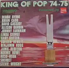 Ceremony details: Held on 25 October 1974, guest presenters: David Cassidy, Gary Glitter.[26][27] A compilation album titled King of Pop '74–'75 was released with tracks supplied by previous winners and guest presenters.[26] Next to the list of various artists, the cover depicts the trophy that was presented to award winners.[26]