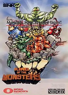 King of the Monsters[lower-alpha 1] is a fighting game developed by SNK, released for arcades in Japan in 1991, and ported to the Neo Geo AES later that same year.[1] The game features playable giant monsters that are reminiscent of characters from kaiju and tokusatsu films.