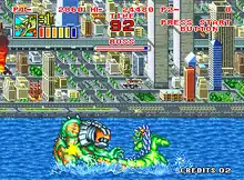 The game was released for the Neo Geo AES on June 1, 1992 and was ported to the Neo Geo CD (in Japan only) on September 9, 1994 (as a launch title). The game was ported to the SNES[4] on December 22, 1993, and Sega Genesis exclusively in North America on 1994 by Takara. The Genesis version was developed by Betop and differs significantly from the original version of the game. Rather than being a side-scrolling beat 'em up, this version plays like a one on one fighting game. This version also gives the player the ability to play as the various boss monsters. All characters (excluding Famardy) are playable and have all been given special attacks executed using standard fighting game motions. Players must destroy all other monsters, one after the other, without any of the scrolling stages in the Neo-Geo version and then defeat a clone of the player's monster to win the game. This version of the game also takes place in 3 extra cities in Kyoto City, Tokyo City, and Osaka City.