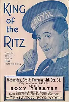 King of the Ritz is a 1933 British musical film directed by Carmine Gallone and Herbert Smith and starring Stanley Lupino, Betty Stockfeld and Hugh Wakefield.[1] A separate French-language version King of the Hotel was made, with Stockfield appearing in both films.