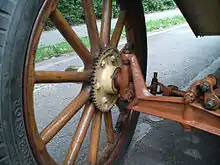 Originally, with the 'turntable' steering of horse-drawn wagons, this was a single pin on which the moveable axle was pivoted beneath the wagon's frame. This located the axle from side to side, but the weight of the wagon was carried on a circular wooden ring turntable surrounding this. Similar centre pivot steering was used by steam traction engines, the kingpin being mounted on the 'perch bracket' beneath the boiler. Some early cars also used centre pivot steering, although it became apparent that it was unsuitable for their increasing speeds.
