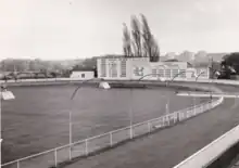 In 1927 the British Greyhound Sports Club (BGSC) acquired the lease of the newly constructed stadium on the south side of Taylor Road and which was accessed off the east side of Alcester Road South.[1] The land on which the stadium was constructed was formerly known as the Horse Show Ground.[2] The first race meeting was on 21 May 1927.[3] The company also owned four other tracks in 1927, Darnall Stadium in Sheffield, Knowle Stadium in Bristol, Boulevard Stadium in Hull and St Annes in Blackpool.[4] The new facilities included a main grandstand with a capacity of 3,000 and a concrete slope in front of the grandstand that could accommodate a further 2,000 people. The stadium capacity was estimated to be around 20,000 and the new build was overseen by Mr J. P. Hughes of the BGSC.[5]