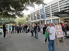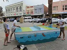 Walyalup Koort is now a paved and landscaped civic centre of Fremantle.[19] As well as the church and town hall, the square also features a giant chess board, various public artworks, and facilities such as toilets,[20] seating, and children's play equipment.[19] Cultural events take place in the square, including movie, music, and arts festivals,[21][22][23][24][25][26] as well as group activities such as yoga[27] and drum circles.[28]