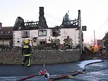 - ↑ "Firefighters battle village pub blaze". This is the West Country. Retrieved 25 July 2011.