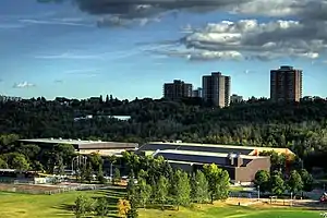 The Kinsmen Sports Centre is a multi-purpose sport and recreation facility located in Edmonton, Alberta, Canada. The land surrounding the facility is called Kinsmen Park, part of Edmonton's city-long North Saskatchewan River valley parks system.[1] Its namesake is the Kinsmen, a service organization. The Kinsmen Sports Centre is owned by the City of Edmonton and operated by the Community Services Department. It was the competition site for the 2005 World Masters Games diving, swimming, synchronized swimming and table tennis.[2]