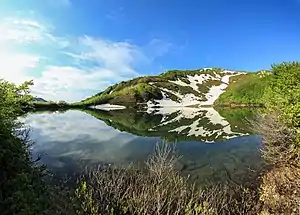The Kintrishi Strict Nature Reserve is located in the valley of the river Kintrishi, which originates from Mount Khino[4] and discharges into the Black Sea near the resort town of Kobuleti. At its lowest elevation, it is at 300 metres (980 ft) above sea level, and its alpine pastures are at elevation of 2,500 metres (8,200 ft). Kintrishi Strict Nature Reserve is bordered from the north by the Kobuleti forest administration, from the east by Shuakhevi Municipality, from the south by Keda Municipality and from the southwest by Mtirala National Park. In the high mountains of the reserve, at a height of 2,200 metres (7,200 ft), there is the small Tbikeli lake. The nearby lake Sidzerdzali is outside the boundaries of the reserve.