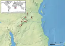 The sharp-nosed chameleon (Kinyongia oxyrhina) is a chameleon native to the Uluguru and Udzungwa Mountains of Tanzania,[1][2] where it inhabits forests (also secondary), woodlands and plantations at an altitude of 1,400–1,900 m (4,600–6,200 ft) above sea level.[3]