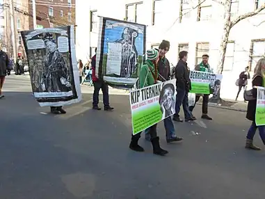 In 1991, Tiernan marched with RUAH, on behalf of women living with HIV/AIDS.[33]