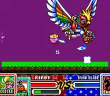 - Dyna Blade: Kirby must stop Dyna Blade, a giant bird, from disturbing Dream Land's crops. The mode consists of four levels that the player must clear before facing off against Dyna Blade. There are also two secret areas and a mini-boss that moves across the world map.
