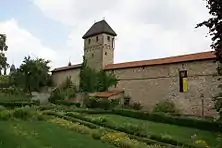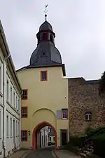 It is mentioned in the Wormser wall-building ordinance from around 900 as one of the places that shared responsibility for maintaining the city wall of Worms.[3] At the end of the 13th century, Kirchheim was inherited by the Sponheim branch line Bolanden-Dannenfels. Count Heinrich II. Von Sponheim-Bolanden raised the village to a town in 1368 and made it his residence. Via his granddaughter Anna von Hohenlohe[4] († 1410) and her husband Philipp I, Count of Nassau-Weilburg, Kirchheimbolanden and the entire Sponheim-Bolander family property finally fell to the Nassau House, which owned it until the end of the feudal period.