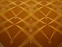 Kirikane (截金) is a Japanese decorative technique used for Buddhist statues and paintings, using gold leaf, silver leaf, or platinum leaf cut into lines, diamonds, and triangles.