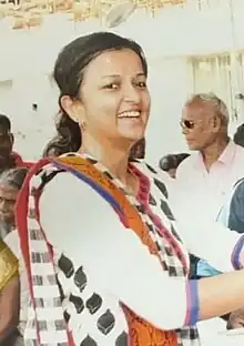 ![]() Kiruthiga giving an award at a Senior citizens' sports meet in 2017 | |
