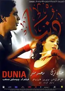 Dunia (English title: Kiss Me Not on the Eyes) is a 2005 Egyptian film directed by Jocelyne Saab and starring Hanan Tork and Mohamed Mounir. It premiered at the 2005 Cairo International Film Festival.[1]