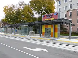 Kitchener Market is a stop on the Ion rapid transit system in the Region of Waterloo in Ontario, Canada.[1] It is located in the Cedar Hill neighbourhood at the intersection of Charles and Cedar streets, about 100 metres (330 ft) south of its namesake, the Kitchener Farmer's Market. The station initially had a working name of Cedar, and it opened in 2019.