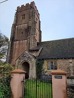 The parish Church of St Nicholas was built around 1500 altered in the mid 17th century and was restored in 1875.[3] It is a Grade II* listed building dedicated to St Nicholas. In the church survives a monumental brass to Richard Bluett (d.1524) and his wife Agnes Verney.[4][5]