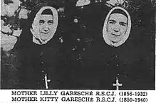 Lilly Garesche was for years superior at Maryville, at Clifton in Cincinnati; at Duchesne, Omaha, Nebraska; and at the City House. She was one of the most beloved nuns St. Louis has ever known. For many years, she was the directress of the Sodality, and spent much of her time in the convent parlor, listening to women's troubles and comforting them.[2]