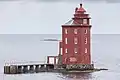 The 17.5-metre (57 ft) tall lighthouse is made of stone with an octagonal-shaped tower that is painted red. The 14,400-candela light sits at the top at an elevation of 20.5 metres (67 ft) above sea level. The white, red, or green light (depending on direction), occulting once every 6 seconds. There is a fresnel lens that has been in use since 1906. It can be seen for up to 8 nmi (15 km; 9.2 mi). The lighthouse is lit every year from July 21 until May 16. It is dark during the late spring and early summer months due to the midnight sun.[1][2][3]