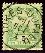 Hungarian stamp cancelled Tőkés-Ujfalu in 1901