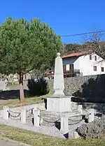 There is a stone monument in the center of the village commemorating Hungarian soldiers killed in the First World War. The monument stands on a stepped plinth; it consists of a cube engraved with the Hungarian coat of arms and the years 1915–1916 topped by an obelisk. It is surrounded by small pillars, of which two are preserved originals.[4]