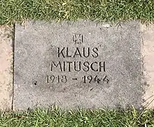 Posthumously, Mietusch was awarded the Knight's Cross of the Iron Cross with Oak Leaves (Ritterkreuz des Eisernen Kreuzes mit Eichenlaub) on 18 November 1944.[64] He was the 653rd member of the German armed forces to be so honored. Mietusch was buried in the honor section of the Düsseldorf Northern Cemetery (Field 112-Section 0-Grave 117).[3] Caldwell characterized Mietusch as a very nervous man with limited social skills. According to Caldwell's account, Mietusch never interacted with non-commissioned officers, overcoming his lack of self-confidence by an act of will.[65]